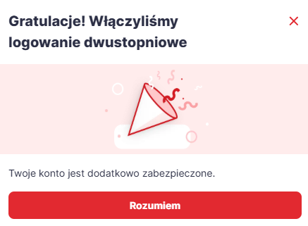 Gdy włączymy logowanie dwustopniowe, zobaczysz komunikat: