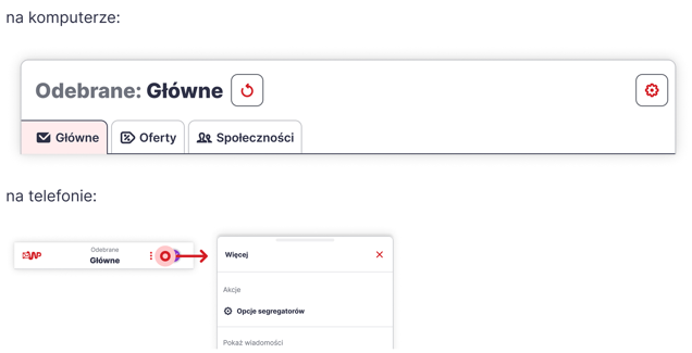 Zarządzaj wygodniej listą wiadomości, gdy korzystasz z poczty na telefonie, w przeglądarce.