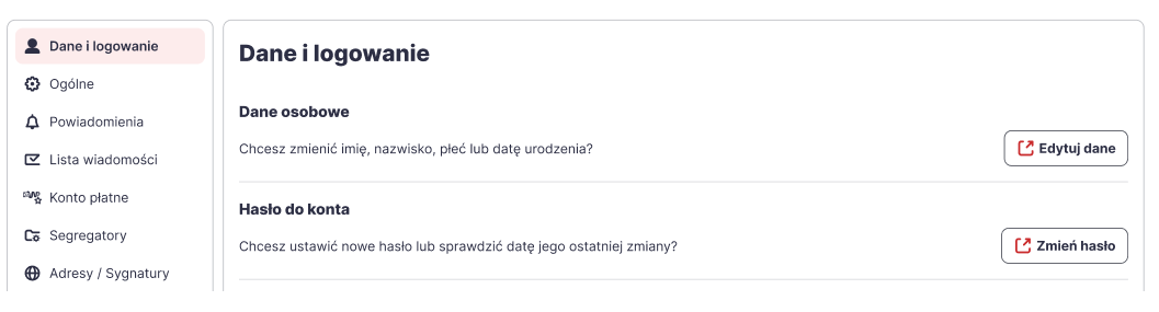 W Opcjach dodaliśmy Dane i logowanie. Szybko przejdziesz z nich do edycji danych, hasła i metod odzyskiwania konta.